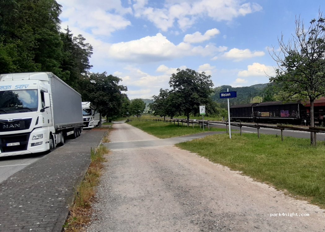Der Parkplatz des Eisenbahnmuseums wird nur an Werktagen genutzt. Etwas Lärm von der Landstraße.