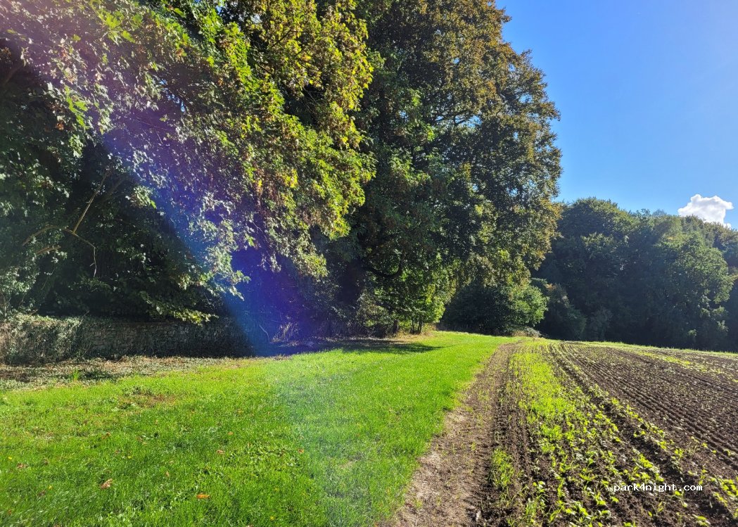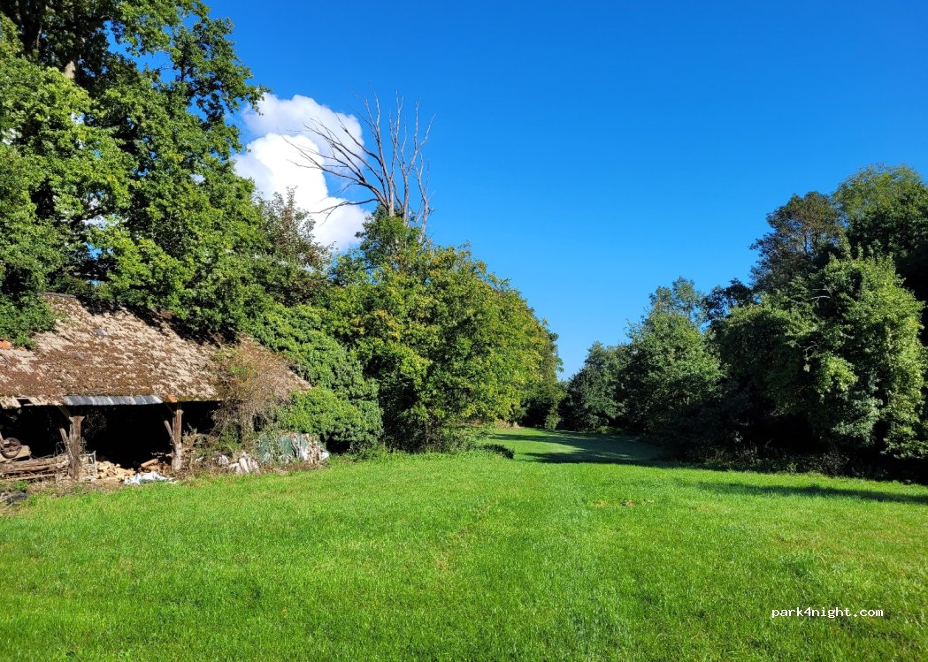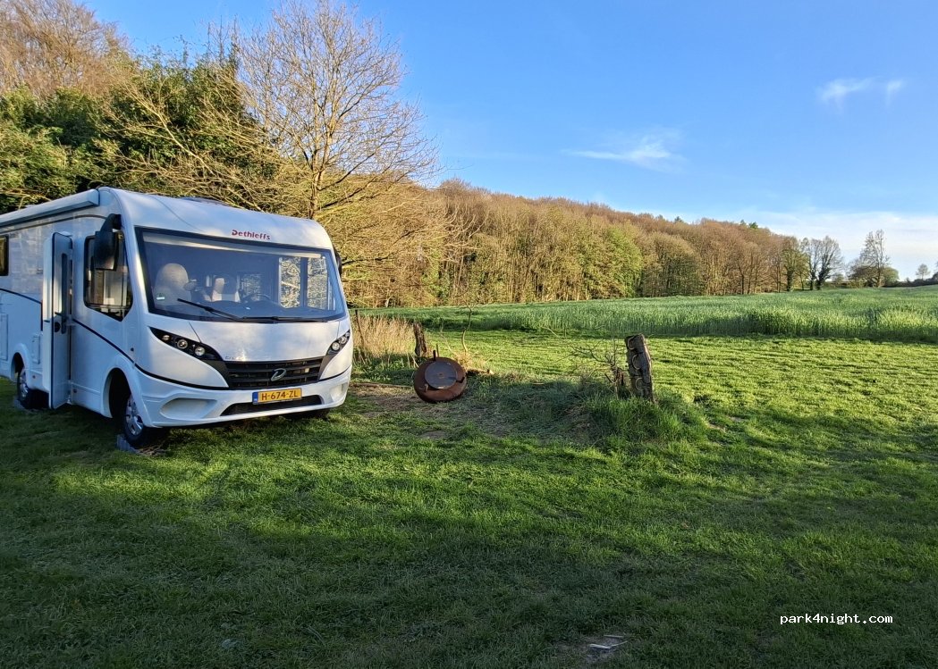 The other reviews are spot on. One parks on a large groomed meadow at the edge of the forest. The owner was very nice and we were the only campers there. All the spots are sloping (slippery when wet?), but with one ramp on each of two tires, it was no problem. They have a little shed with fresh eggs from the farm, and honey from the region. No comparison to a parking lot with 20 other campers!