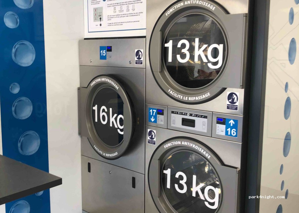 La Lavage Laundromat. Washing machine 8kg, 13kg, detergent included. Dryer 13kg, 16kg 10 minutes each. Machine wash well.