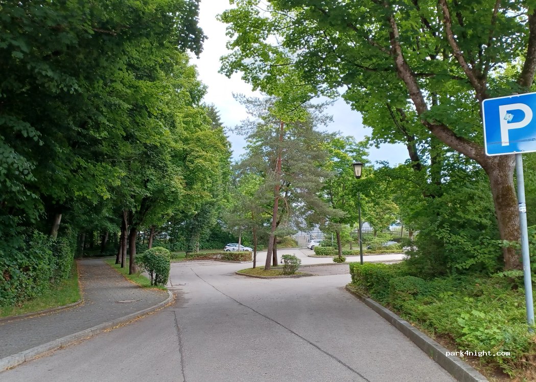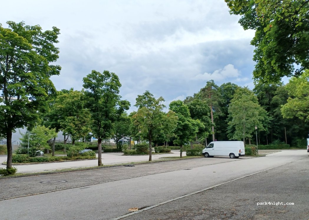 Ce parking tel qu'il est situé ici à côté de la patinoire a une interdiction de stationner et l' accès est bloqué par des plots au milieu de la route. Par contre, le parking officiel de la patinoire, accessible par la rue Jahnstrasse, est autorisé et gratuit.