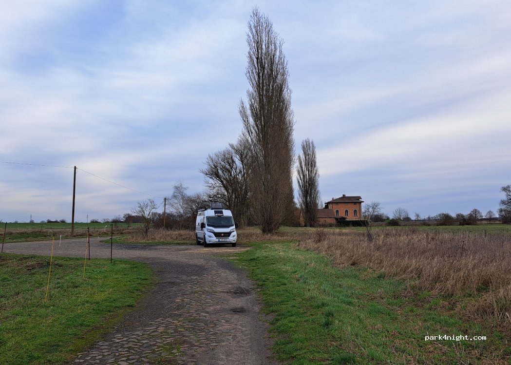 Sehr ruhige Location. Die letzte Straßenlaterne beleuchtet auch den Standort. Einen Bäcker gibt’s im Ort, etwa 1,5 Kilometer entfernt.