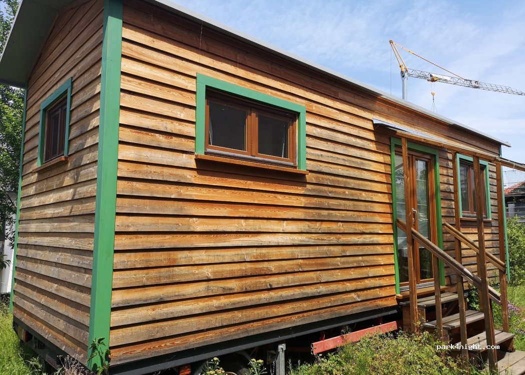 Man kann auch eine kleine Villa (Schäfer-/Zirkuswagen) mieten.