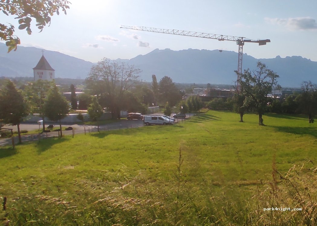 Lovely municipality parking (free at night, otherwise use parking pay.ch - very cheap). Situated on the side of a hill overlooking city and mountains, very quiet and tranquil with a picnic table and grassy field.