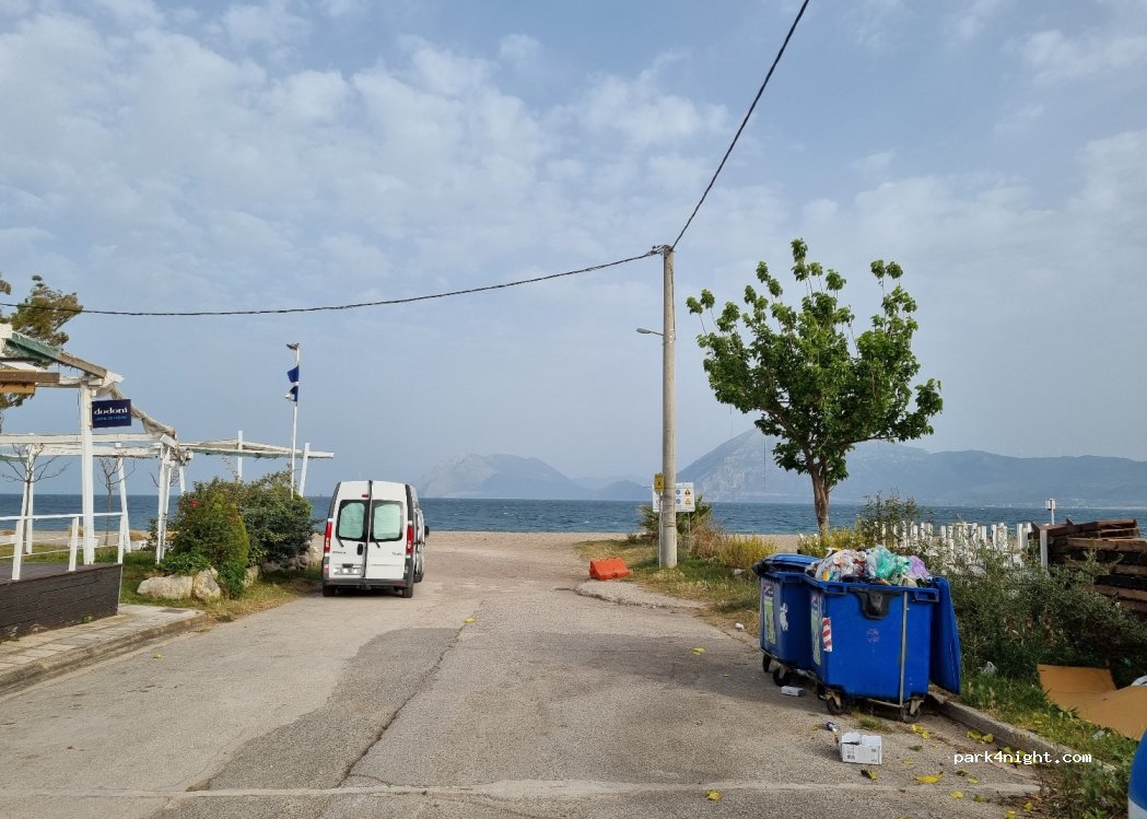 Its quiet and safe area to stay there if you stop in patras.. the kastelo beach bar is always open and the owner is very friendly with campervans.. it has free shower.