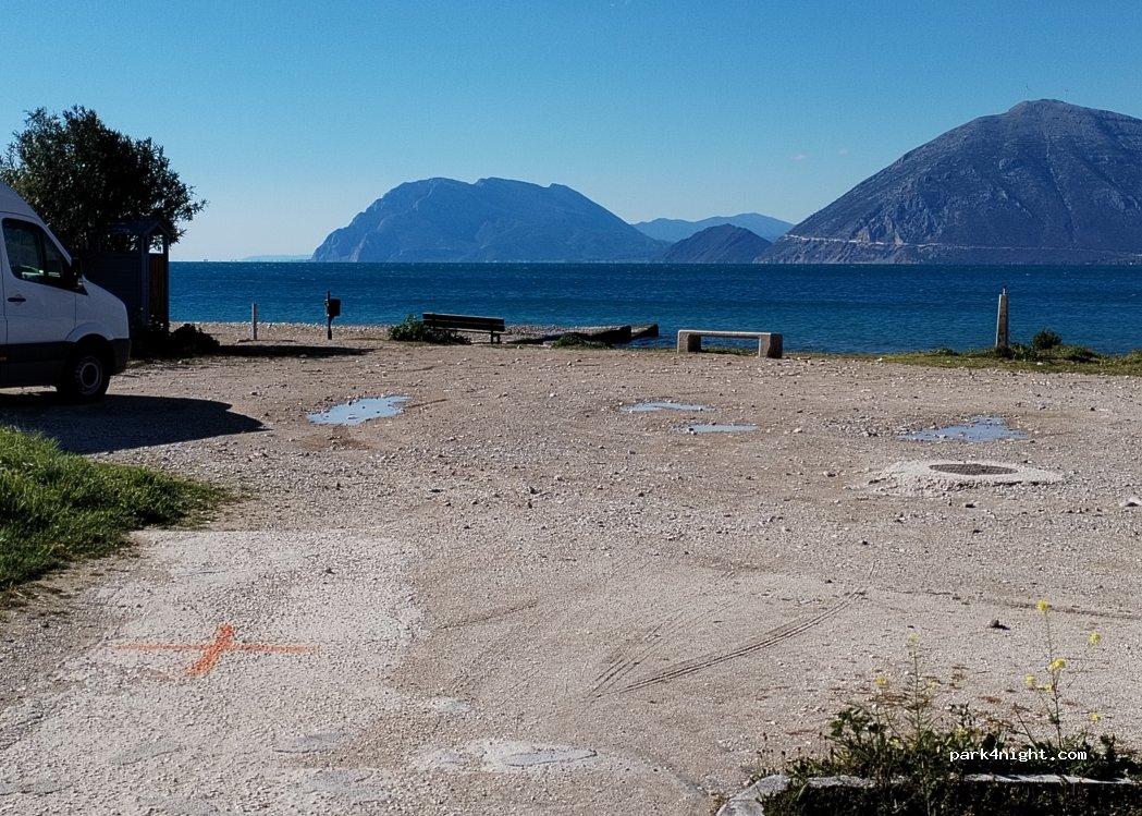 Es ist eine ruhige und sichere Gegend, in der Sie übernachten können, wenn Sie in Patras anhalten. Die Kastelo-Strandbar ist immer geöffnet und der Besitzer ist sehr freundlich zu Wohnmobilen. Es gibt eine kostenlose Dusche.
