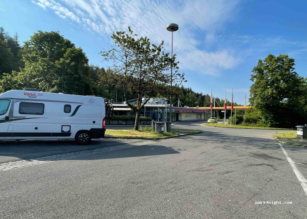 We spent the night here on the way to Munich, sometimes a bit noisy due to the proximity to the highway but you can sleep. There is a restaurant and a Shell gas station. There was always the occasional car parked. No problem.
