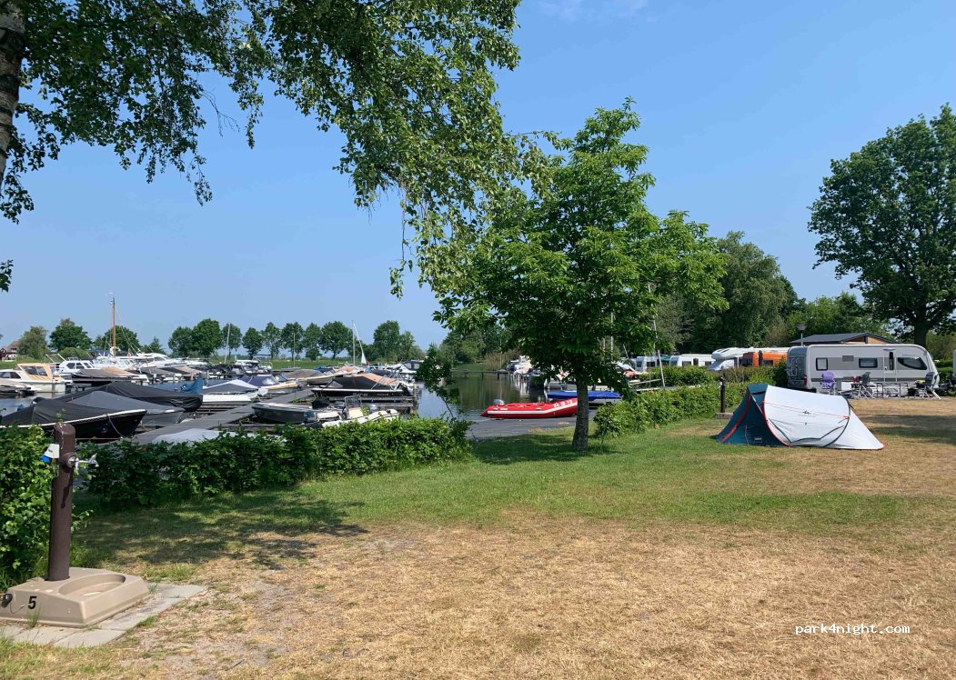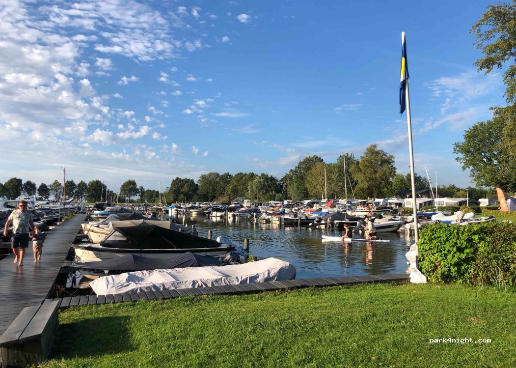 Brilliant campsite, very clean sanitary block, swimming, fishing, boating and cycling all accessible and rental too. Loved the view across the lake, quiet at night and lively in the day. Easy bike ride to Giethoorn - the Venice of Holland and lovely place. Stayed extra nights as so much to do. €23 per night for large hedged pitch, 3 adults and electric and water to the pitch. Drive over waste.