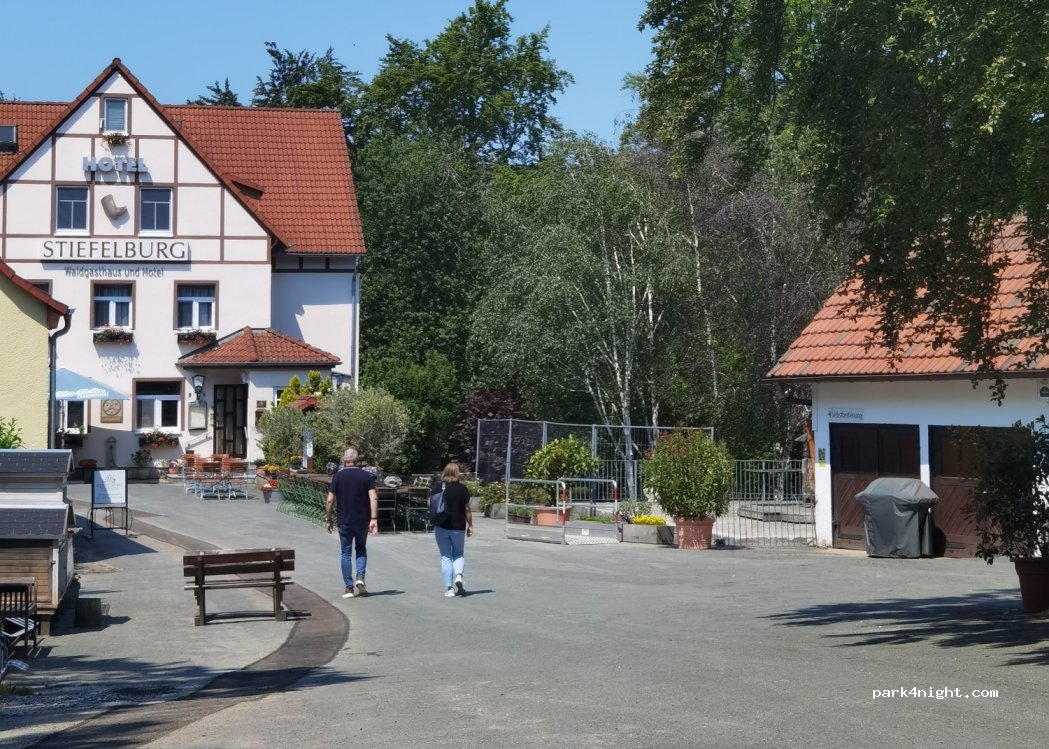 Sehr unebener einfacher Parkplatz am Waldrand. Abends schön Schatten! Kein Problem für große WoMos. Restaurant MO DI geschlossen. Hunde dürfen NICHT frei laufen im Wald.