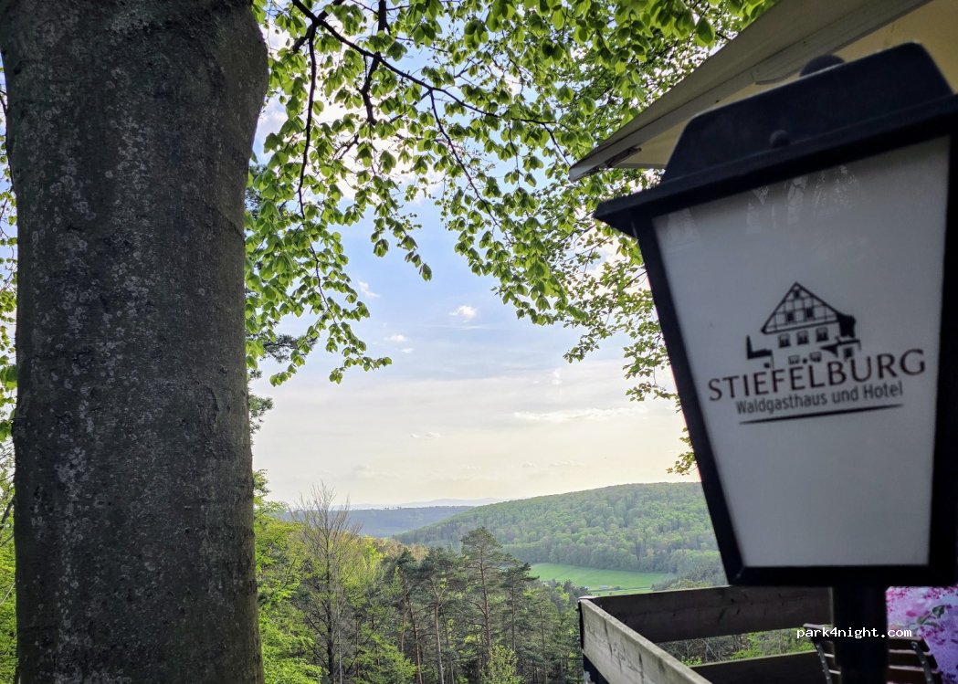 Sehr schöner Platz im Wald. Das Hotel, die Terrasse mit großartiger Aussicht und Umgebung. Haben beim Bierchen gefragt ob wir über Nacht stehen dürfen, ist kein Problem. Frühstück ist für 12€ möglich.