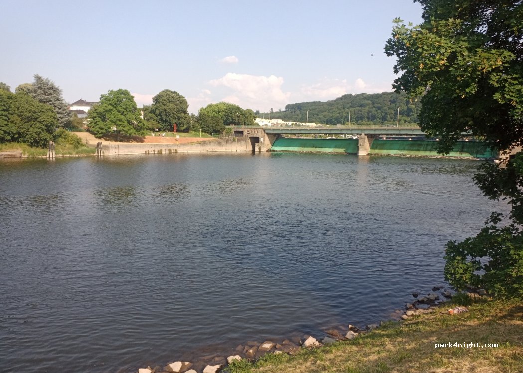 Unser Womo ist knappe 7m lang und 3.20m hoch, also über die Landsberger Str anfahren und den mega Blick auf die Ruhr und beleuchtete Schleuse genießen. Der Biergarten ist auch nur 20m entfernt:-) Kettwig fußläufig und traumhaft schön.