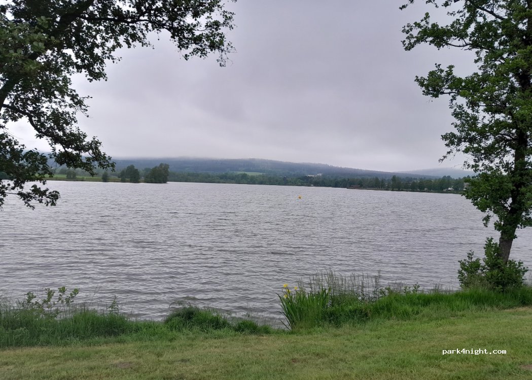 Großer Parkplatz in unmittelbarer Nähe des Weißenstädter Sees und kurz vor der Einfahrt zum Campingplatz.