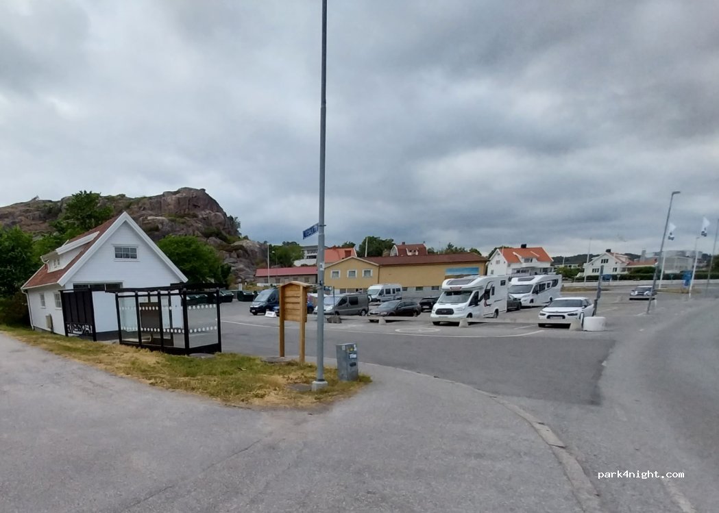 Parkplatz mit super Lage. In 5 Gehminuten in Fjällbacka oder beim Coop. Es ist angegeben, dass 5 Wohnmobil-Stellplätze vorhanden sind. Diese sind gesondert gekennzeichnet. Waren um 12Uhr hier und haben ohne Probleme einen Platz bekommen. Öffentliche Toiletten sind vorhanden und ok. Mit App kann man seine genaue Parkdauer angeben (erste Stunde ist kostenfrei).