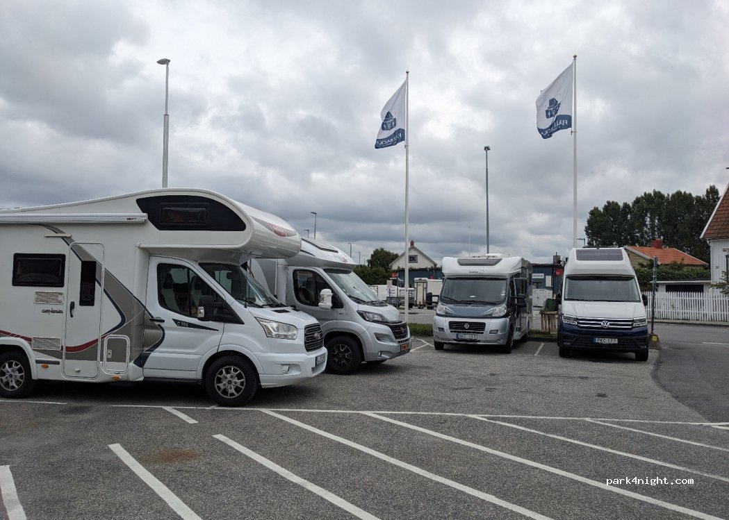 5 emplacements sont maintenant réservés pour les camping-cars, gratuit suivant les périodes. Magasin COOP ouvert jusqu'à 21h. A 5mn à pied de la place Ingrid Bergman