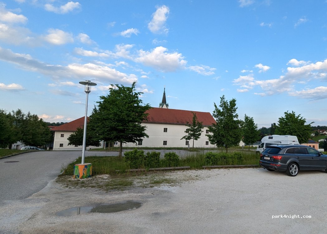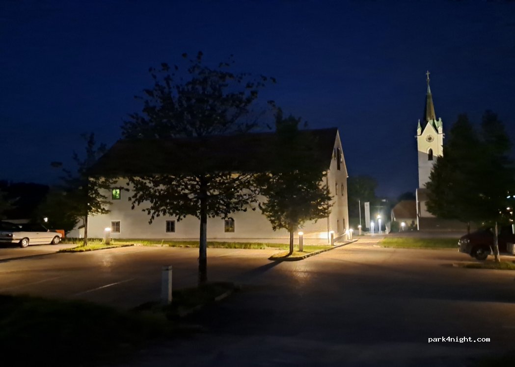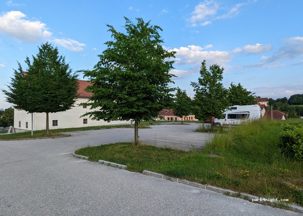 The parking lot is located near the village church. It Is a very calm place with a few parking spots.
