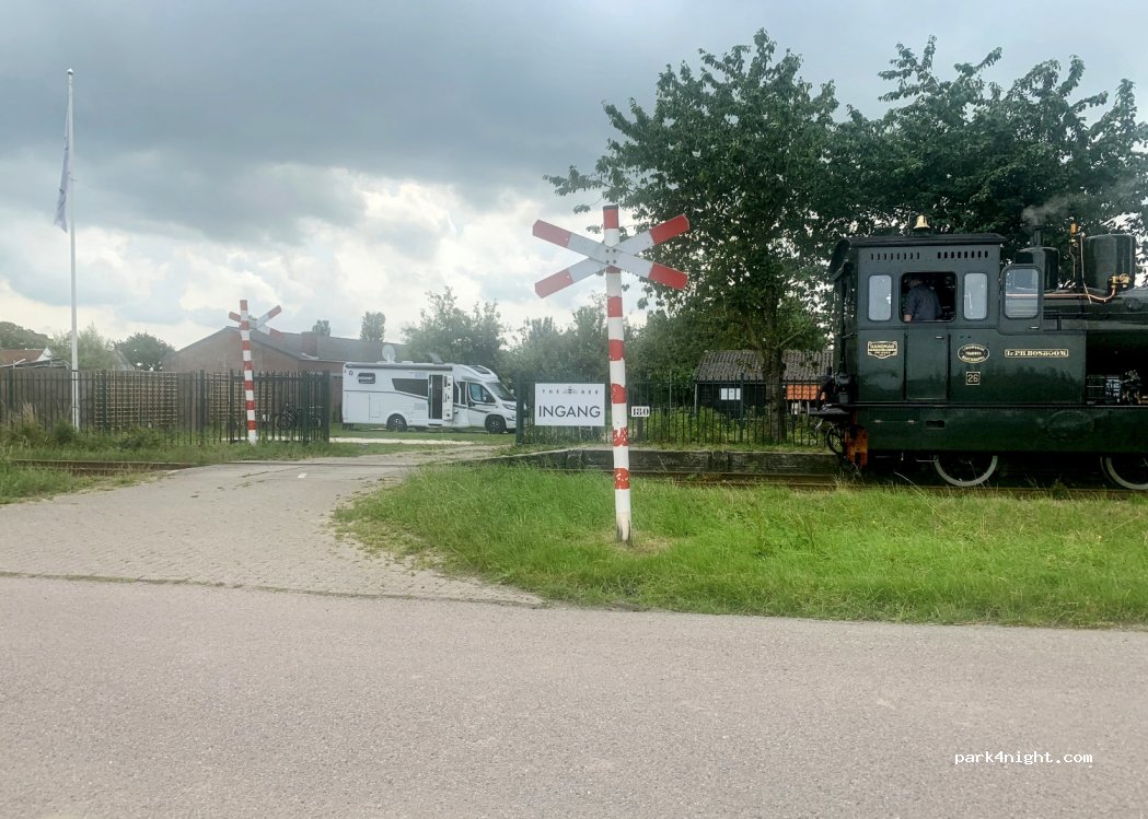 durante el verano, el histórico tren fluvial de Hoorn - Medemblik pasa por la propiedad alrededor del mediodía.