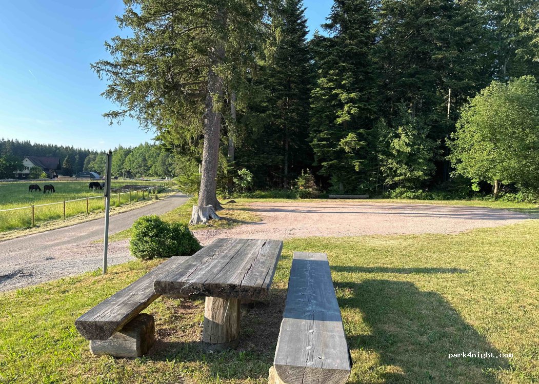 Kleiner feiner Parkplatz direkt an einer tagsüber durchschnittlich und nachts wenig befahrenen Straße. Ein Tisch mit Bänken sind ebenfalls vorhanden. Perfekt für's wandern in der Umgebung. Wir haben sehr gut geschlafen.