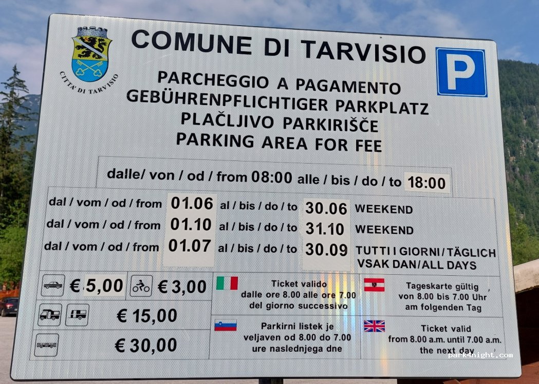jeli jsme mimo sezónu. Pani majitelka rekla ze parkoviste je zdarma a můžeme i dopředu(kde je výhled na jezero ale je to to tam pouze pro auta ne pro obytnaky) první dvě noci vse v poradku. Italové ovšem zřejmě žijí jen v pátek a o víkendu protože v sobotu rano nam pan výběrčí klepal na karavan s parkovacím lístkem. i tak je ale parkovné levné oproti ostatním za noc 7,5 €