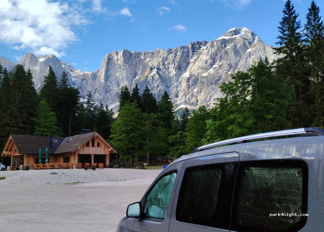 Ein guter Ausgangspunkt für die schöne Wanderung um beide Seen. Jetzt im Mai war alles kostenfrei nutzbar. Leider ist das Campen, Zelten und Wohnwagen aufstellen nicht mehr erlaubt (Polizei fährt Streife). Unser Tip: Stellplatz an den Skisprungschanzen in Slowenien nutzen.