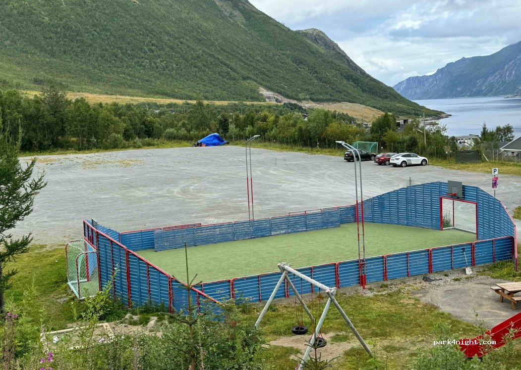 This is definitely a hiking trail parking lot, even if it is close to the school. Paying by Park4Night app, one hour = less than 29 NOK (still expensive, but similar to the other parking lots in town). Space for far more than 8 cars, we stood here with estimated 10-15 others. Possibility to throw away your trash. Toilets available and clean.