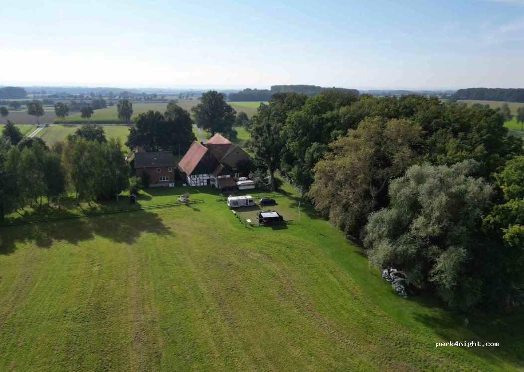 Traumhafter Stellplatz. Himmlische Ruhe. Natur pur. Windgeschützt am Waldrand mit freiem Blick auf Wiesen und Felder. Perfekter Grillplatz mit Schwenkgrill und bei Regen durften wir die überdachte Anmeldung am Alten Fachwerkhaus nutzen. Besser geht nicht. Die sehr netten Gastgeber waren ausgesprochen hilfsbereit mit Rat und Tat. Idealer Ausgangspunkt für Radtouren.