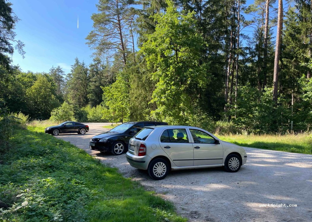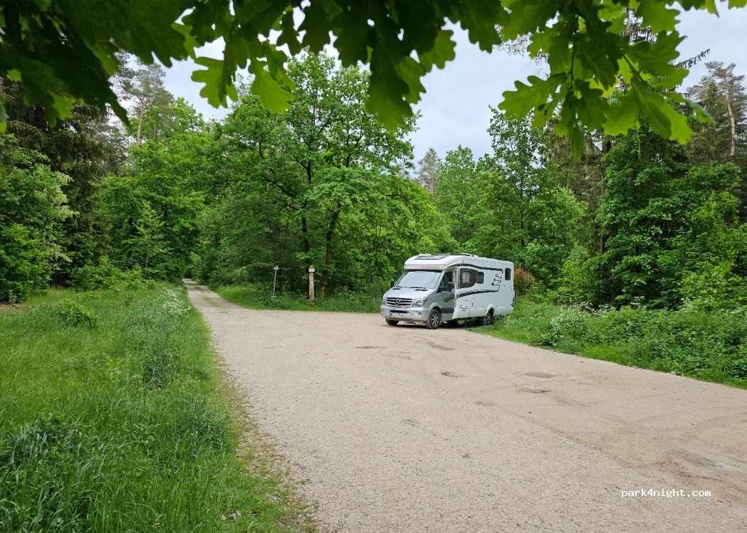 Gut für eine Übernachtung für Fahrzeuge mit höchstens 7,80. Dann muss das Heck aber schon über den Grünstreifen. Schlechter O2 Empfang, keine Mülleimer und keine Verbotsschilder. Tagsüber abwechselnd 3-4 Autos mit Spaziergänger und Gassigeher. Liegt zwar an einer Straße und ist tagsüber und zur Nacht ruhig. Von dort aus ein paar Wanderwege weg und in 2,5 km ist der Kunstwaldgarten im Raffa.