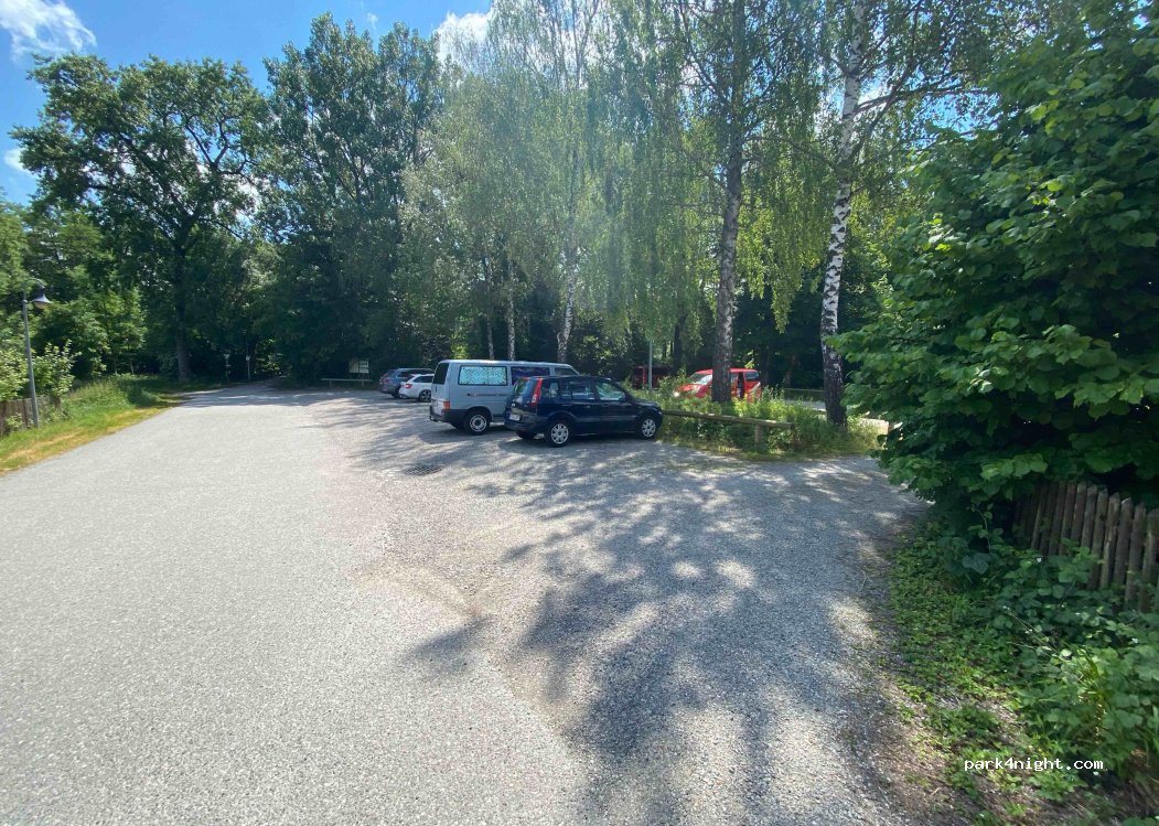 20 kostenlose Parkplätze am Ende einer Straße, kein Durchgangsverkehr, einziges Problem : Kirche 80m weg, aller Viertelstunde klingelt es, auch sonntags früh um 6 Uhr sehr lange. Hier ist der Startpunkt für Wanderungen, hier halten Einheimische um mit ihren Hunden spazieren zu gehen. Kleine Badestellen vorhanden.