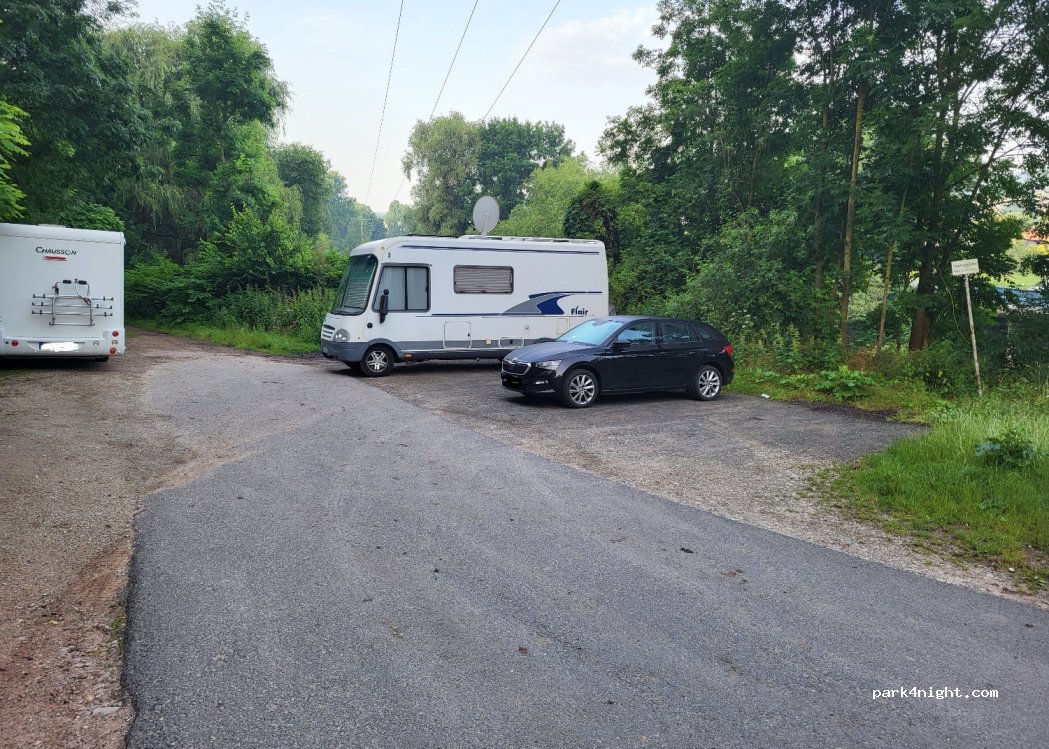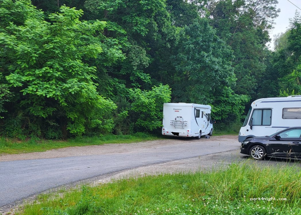 Petit parking en bordure de forêt et route peu fréquentée. Parfait pour un séjour d'une nuit.