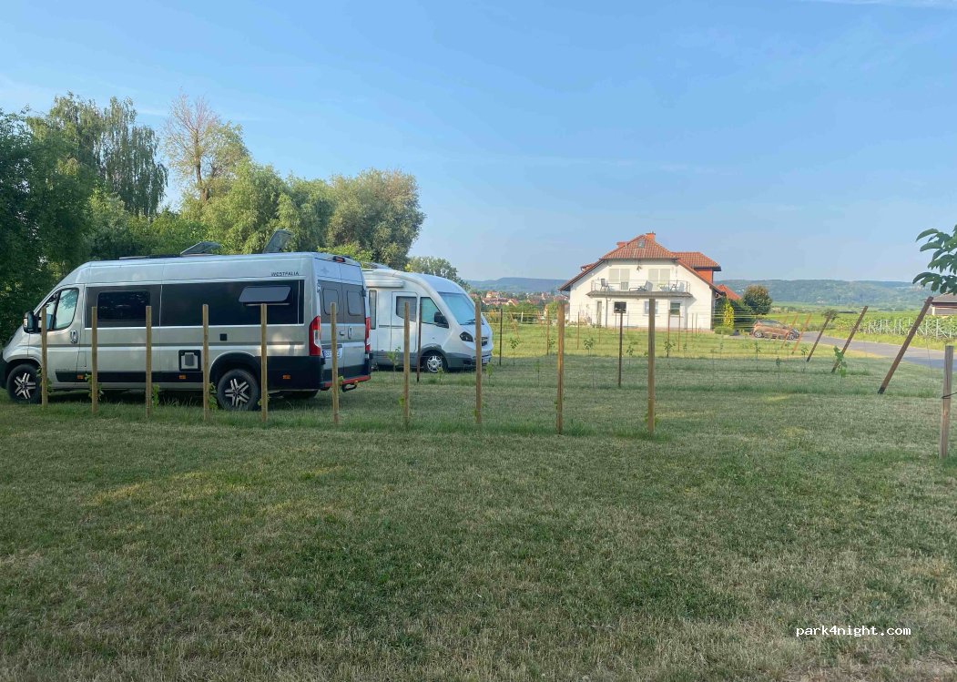 Bewertung basiert auf autarkem Stehen in der Natur ohne Strom etc. Super Location mit viel Platz für den Camper auf einer Wiese direkt neben den Weinbergen und netten Gastgebern, bei denen man auch tollen Wein probieren & kaufen kann. Viele Gassi Runden für Hunde.