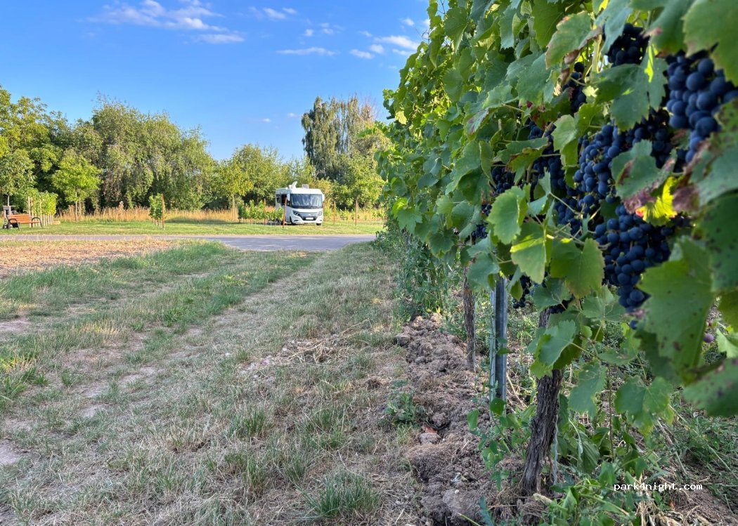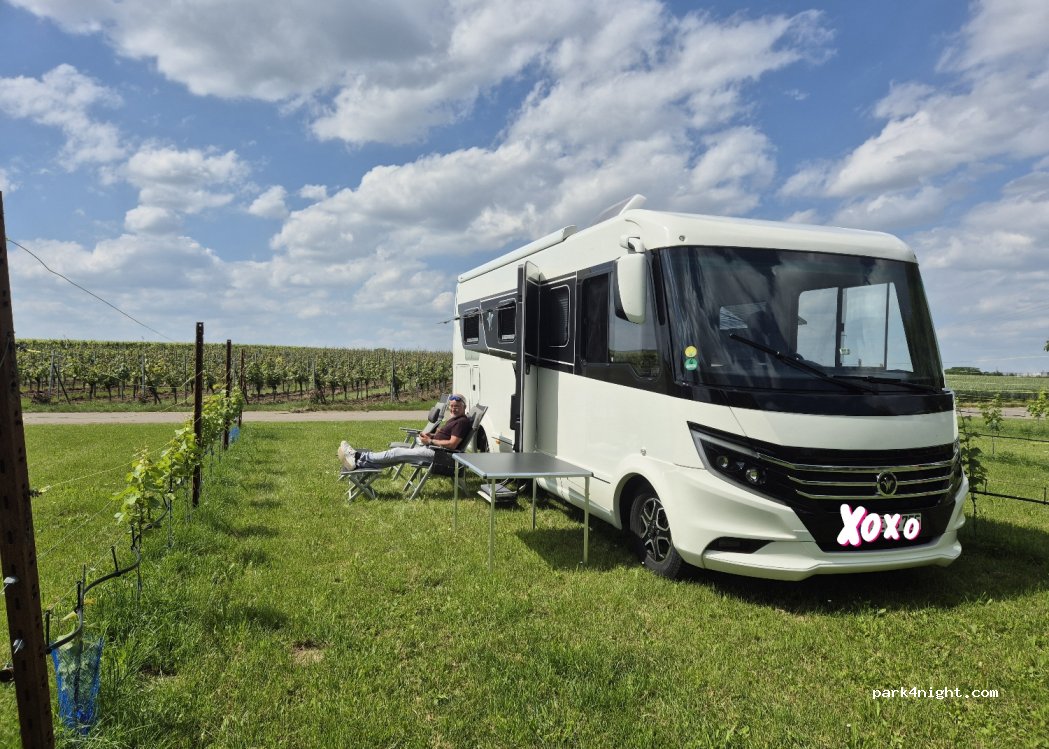 Wir haben hier eine kleine Auszeit genommen. Schöner Stellplatz in den Weinbergen. Samstags hatte der Winzer viel zu tun, daher waren den ganzen Tag ab 7 Uhr Trecker unterwegs. Sonntags war es sehr ruhig und entspannt. Wir haben 6 Flaschen Wein gekauft und bei uns wurde die Stellplatz Gebühr leider nicht verrechnet.