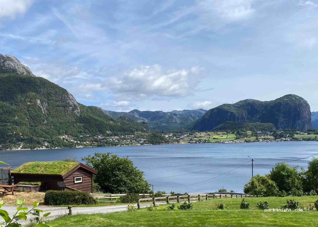 Camping possibility at the Lysefjord Hyttegrend. In addition to several cabins, there are some RV sites here. These are clean and with a nice view. Unfortunately there is no toilet or shower. Very nice hostess. We stayed here for two nights to go hiking in the area and then continue to Preikestolen.