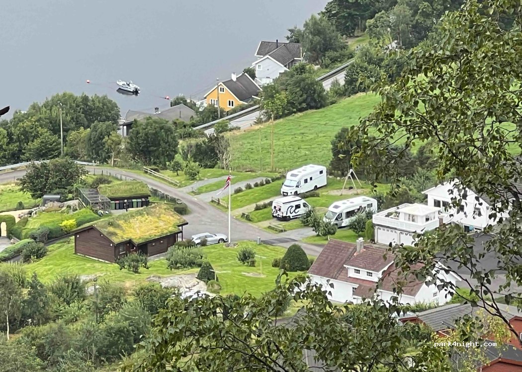 Brilliant. Lovely flat pitches overlooking fjord. Fresh Water and cdp available. Really lovely lady at reception where we paid 250 nkr. Some road noise when ferry unloads but very quiet at night. Sheep with bells add to the atmosphere. Amazing hike from the pitch to panoramic views of fjord. Definitely recommend.