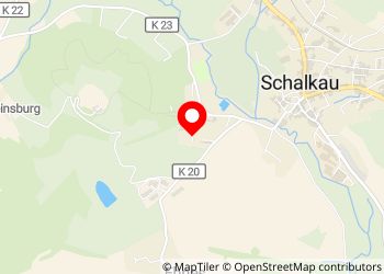 Schiesshaus Platz à Schalkau, qui est souvent utilisée comme parking pour les bus publics et autres véhicules en dehors des événements. De là, vous pouvez monter à travers la forêt jusqu'aux ruines voisines ou en été jusqu'à la piscine à quelques 100 mètres.