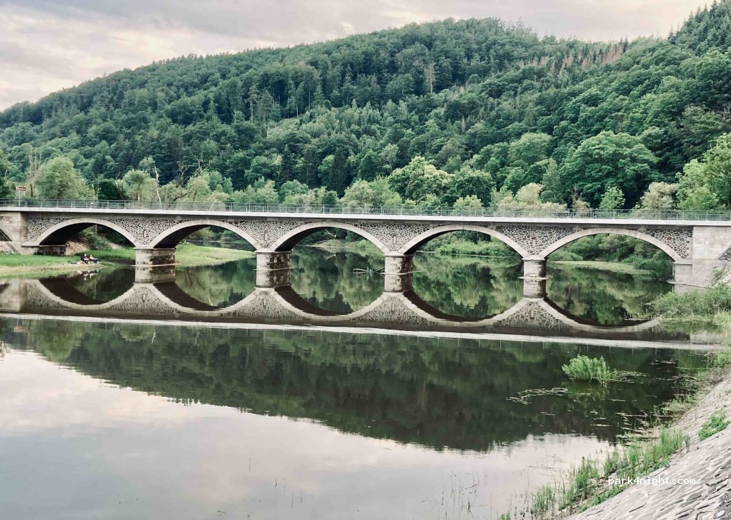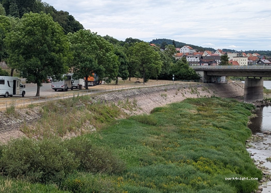 Wir haben den kleinen Parkplatz auf der gegenüberliegenden Seite der Eder genommen und hatten eine ruhige Nacht. Leider hat der Bäcker Montag und Dienstag Ruhetag und macht sonst auch erst ab 11 Uhr auf.