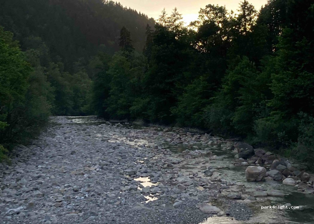 During the day and probably also at weekends it will probably be full here due to the opening hours from 8.30 a.m. to 7.45 p.m. The adjacent street has very little traffic. You can hear the river rushing and the sounds of nature.