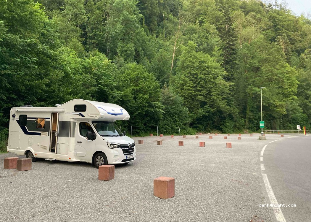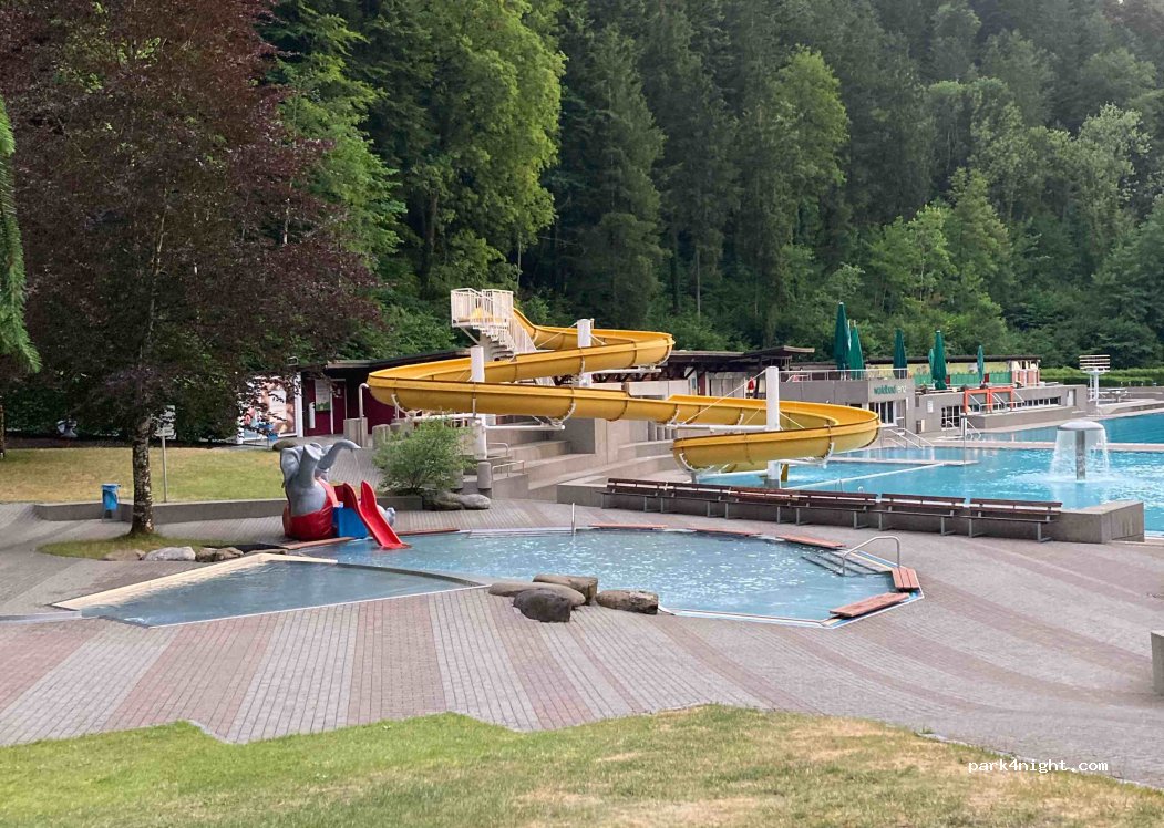Huge parking lot in front of the Waldbad Enz. No prohibition signs, no supply and disposal.