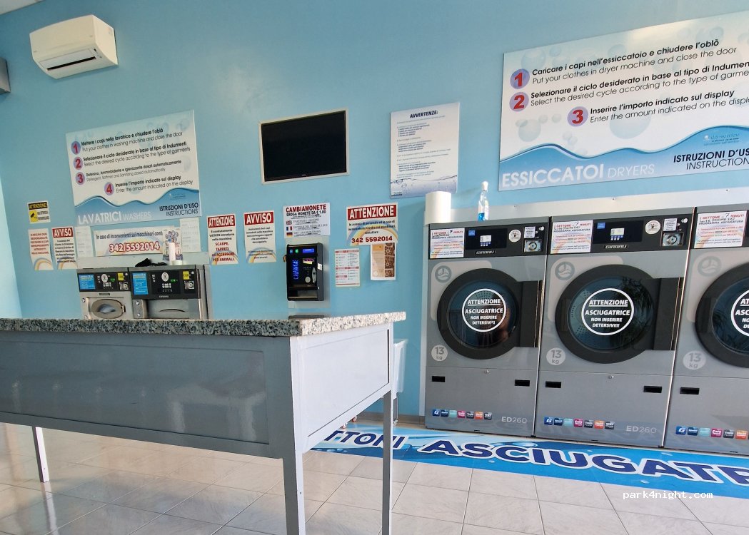 Ottima sosta tecnica per lavaggio biancheria. C'è molta possibilità di parcheggiare nei dintorni.