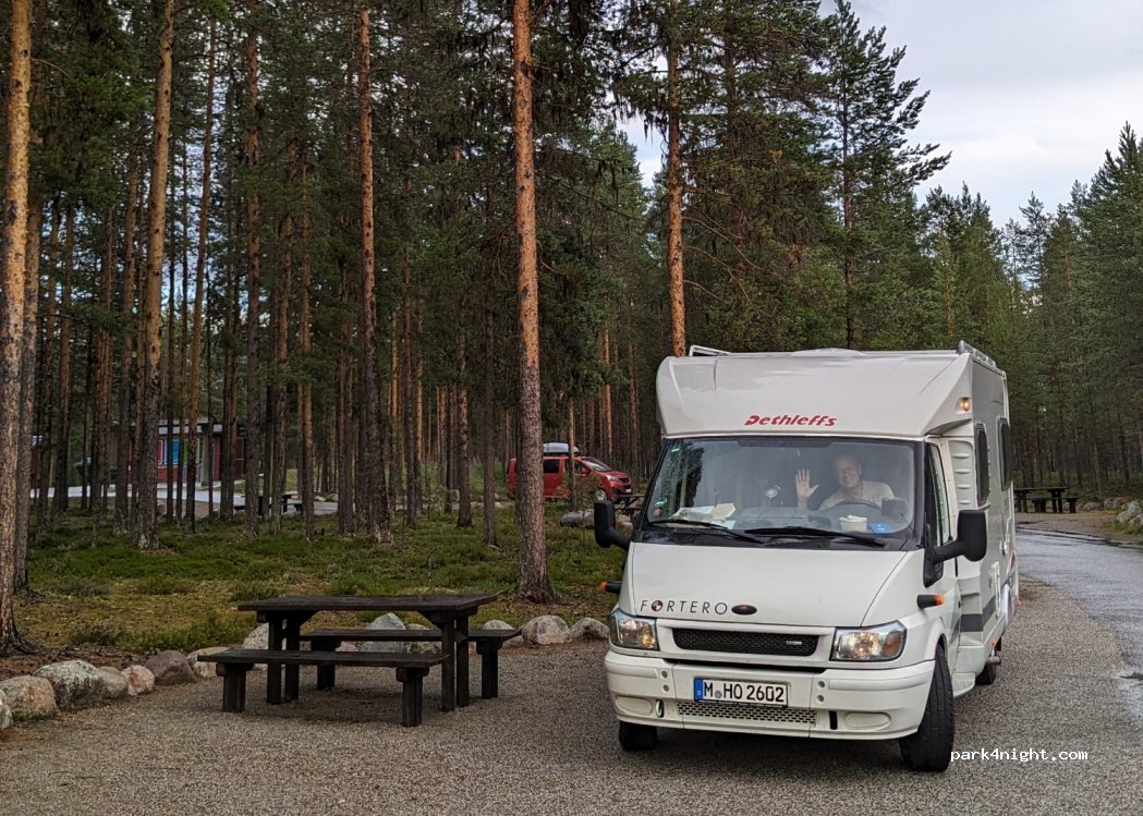 Sehr guter Platz, wir konnten mit unserem 6 m Wohnmobil sogar direkt an einem Picknicktisch parken, für größere Fahrzeuge ist bei den Toiletten ein großer Platz. Sauber, sogar WC war beheizt. Auch für Hunde gut geeignet, man kann eine kleine Runde zum Wasser gehen. Sehr zu empfehlen.