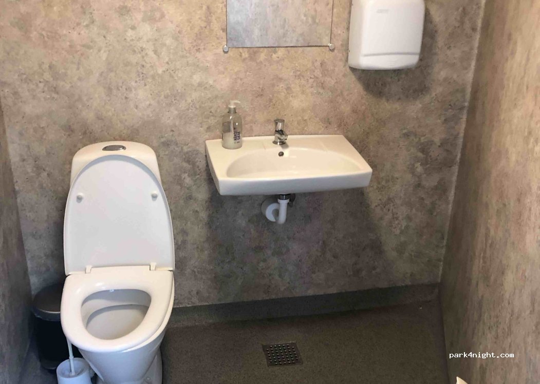 Emplacement génial au cœur de la nature. Toilettes propres, évier avec eau potable, tables de pique-nique, jeux pour enfants, randonnées… grand parking avec gravier pour les voitures et camping-cars. Top !