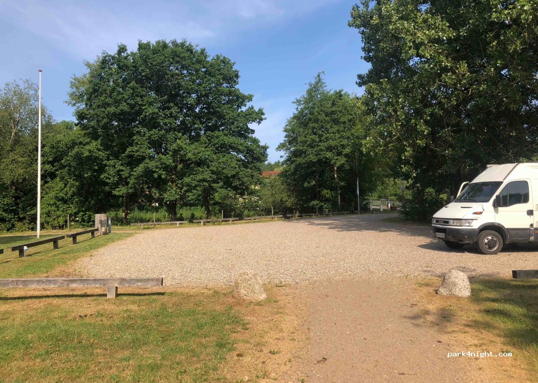 Great parking available. The place by the river is beautiful. There is water, sinks and toilets. There is also a small playground for children. There are also lots of places to sit and a large covered barbecue area. And all this in the middle of a nature reserve. It was extremely quiet at night. Thank you for this quiet, beautiful oasis. PLEASE REGARD SIGN WITH INFO!! Kr. 150,- €20