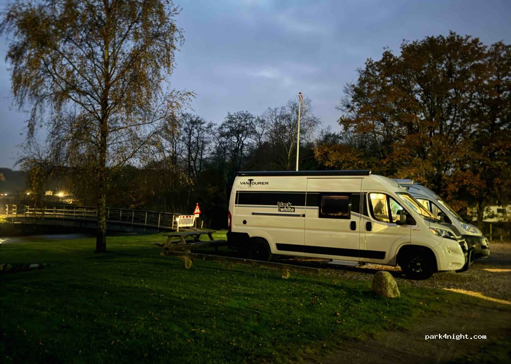 magnifique endroit au bord de la rivière toilettes très propres, très calme, barbecue table de pique nique, abris pour manger, aire de jeux 20€ -150 Kr/nuit à déposer dans une enveloppe prévue à cet effet les gens du coin passent se promener et jouer toujours souriants et très gentils peut être fermé si réservé par les habitants dates et heures indiqués dans l'abri Merci à la municipalité !