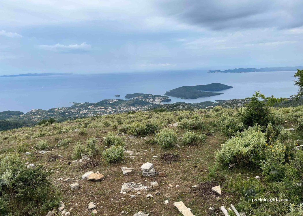 Abgeschieden von allem, auf den Höhen von Syvota, Vorgebirge mit 360-Grad-Aussicht, nicht weit entfernt Herden von Kühen und Pferden. Wir hatten eine sehr ruhige Nacht. Rauh. Zufahrt auch mit großem Wohnmobil möglich.