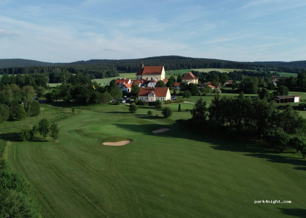 Pitches in the countryside at the Stiftland Golf Course, at the geographical center of Europe.