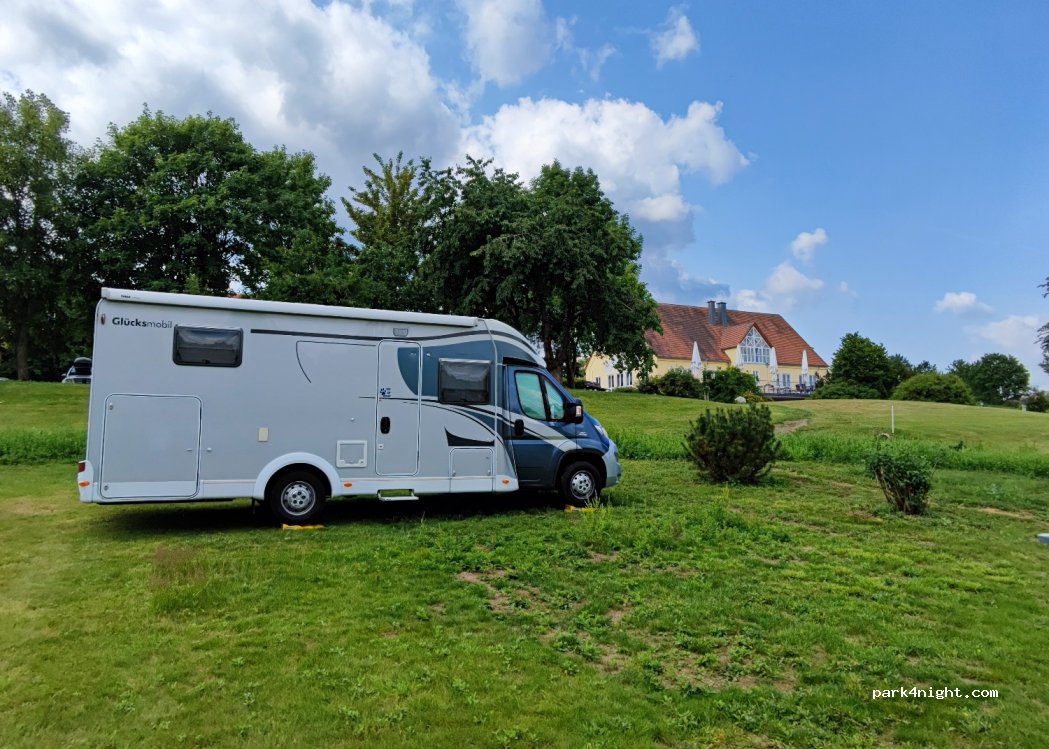 Wunderschöne Stellplatzlage mit Blick auf das Golfplatzgrün. Bezahlung via QR Code von AlpacaCamping mit Paypal, Klarna oder Kreditkarten. Kosten: 1 Nacht mit Strom 16,90€. Duschen sind im 1. OG des Restaurants. Sehr exclusiv ;-) Solange der Wirt da ist. WCs im UG.
