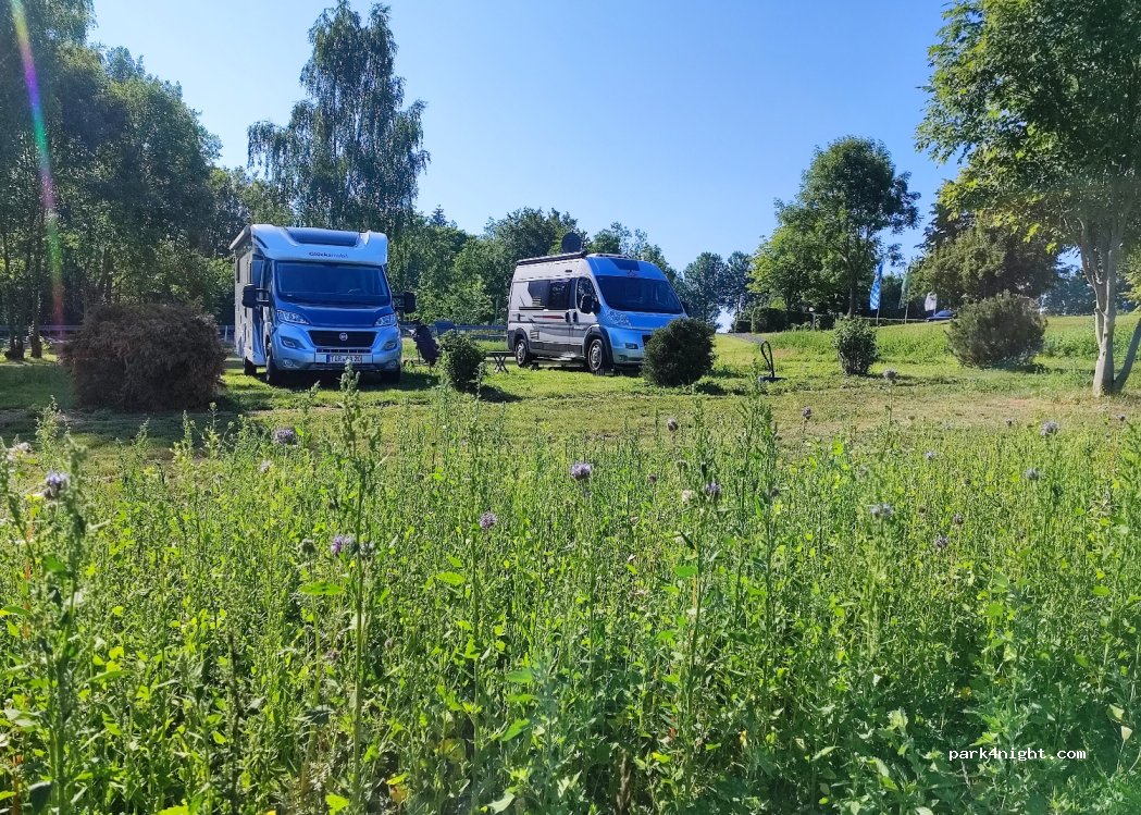 Wie beschrieben . 6 geschotterte Plätze recht eben. Weitere Plätze auf Rasen bei Nässe vorsichtig befahren. WLAN leider recht schwach aber wenn man sich oben auf die Bank setzt ist es ok. Wir haben die Ruhe genossen. Entsorgung geht im benachbarten Sybillenbad