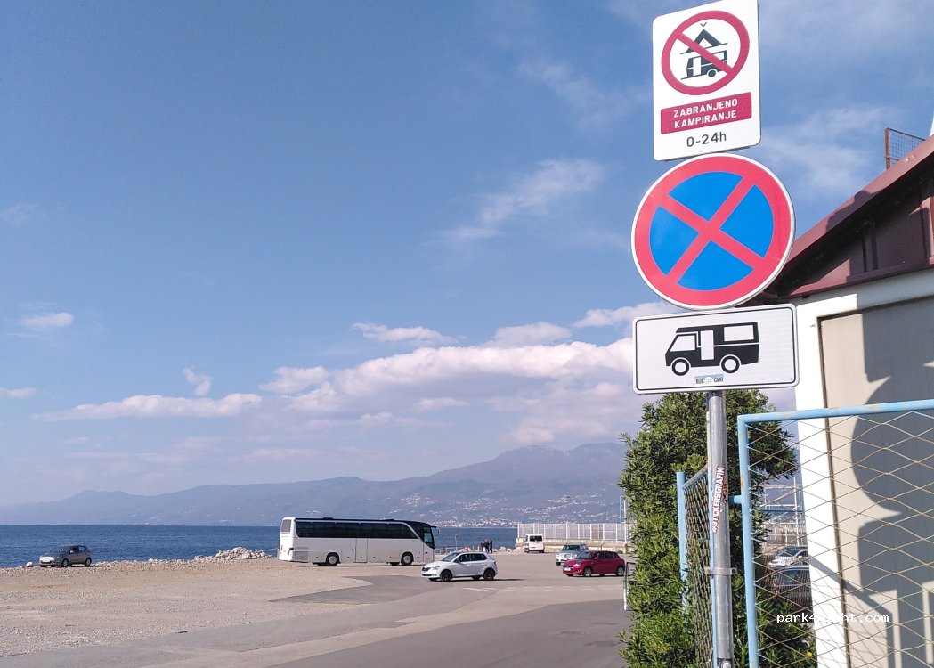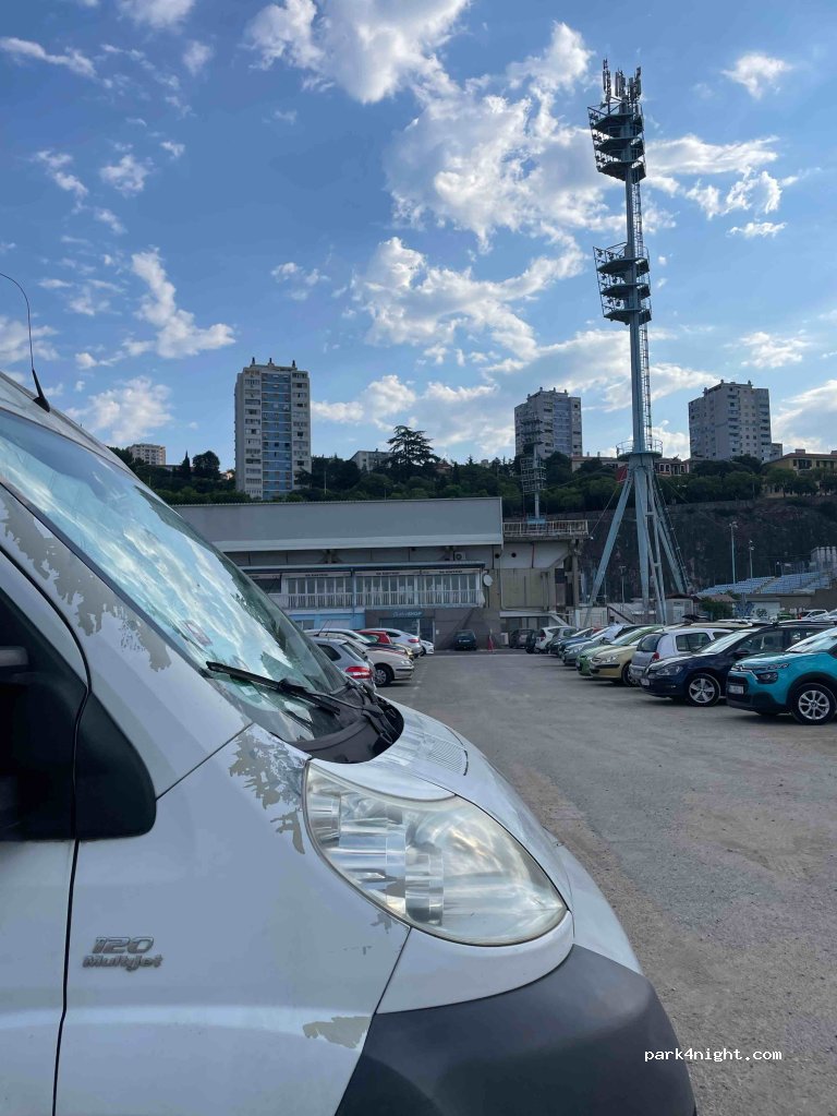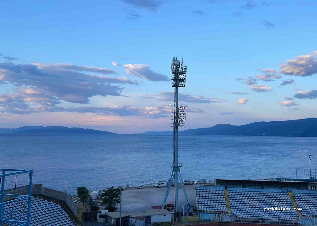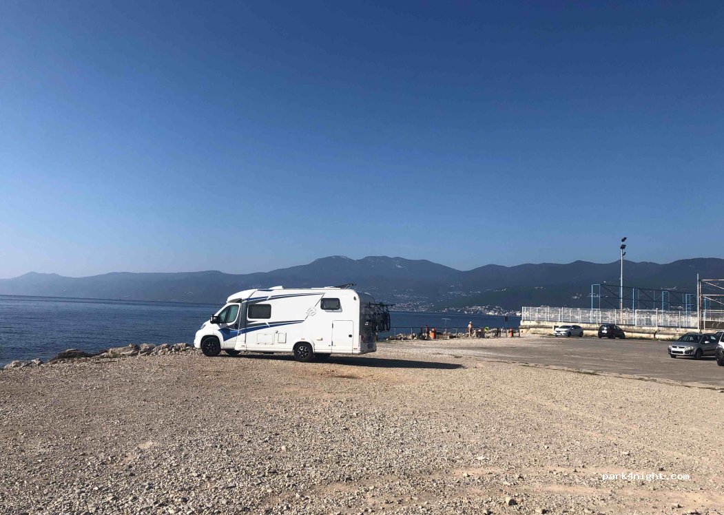 Der große Parkplatz direkt beim Stadion bietet viel Platz und ist perfekt für eine Nacht. Um den Parkplatz zu erreichen die Straße ganz runter fahren (die Koordinaten gehen nur bis zur Straße) Morgens kann man am Strand schwimmen gehen. Das Restaurant "Bistro Na Kantridi" ist sehr zu empfehlen für ein Glas Wein oder eine Pizza am Abend. Sehr freundliches Personal.