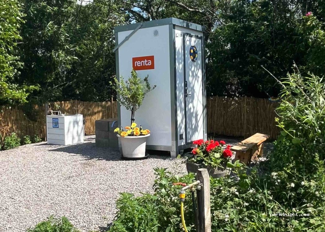 Toilettes, douche extérieure chaude et avec de la pression, de quoi laver la vaisselle, faire le plein d'eau. Tout y est !