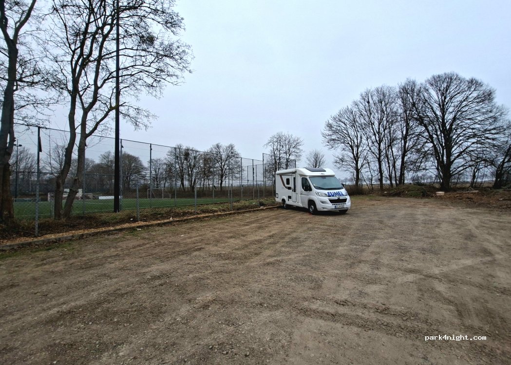 Auch wir sind hinten auf den Schotterplatz gefahren, um den Besuchern der Sportanlagen und des Fitnessstudios nicht im Weg zu stehen. Die Nacht war sehr ruhig und wir konnten morgens direkt auf unsere Wanderung in den Deister starten. Sehr geeignet für Reisende mit Hund. Der nächste Mülleimer ist allerdings etwas entfernt, direkt vor den Fitnesscenter.