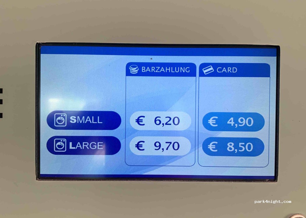 ens ha anat bé trobar una bugaderia, però és molt cara per només 30 minuts de rentat. el lloc per aparcar és massa just. ja es veu en una de les fotos que les furgonetes o autocaravanes sobresurten de l'aparcament. nosaltres hem posat la rentadora i hem buscat un altre lloc per aparcar més estona.