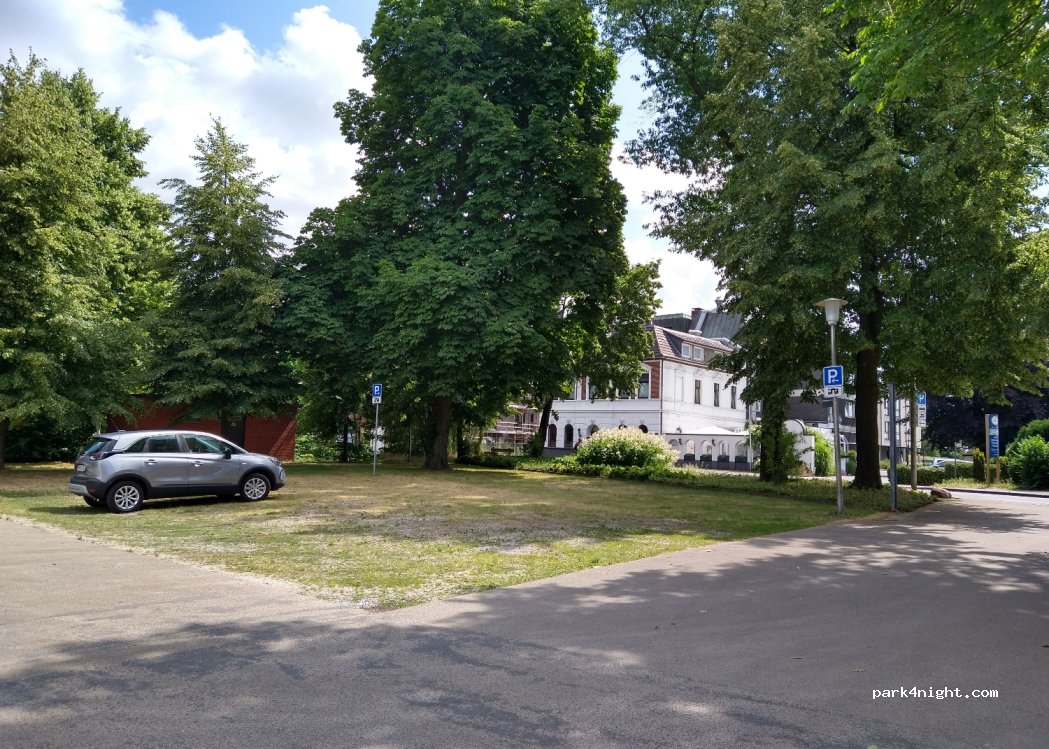 Für die Womos sind drei Plätze ganz vorne an der Straße reserviert. Die Stellplätze sind sauber und gepflegt. Hinter dem Parkplatz ist ein kleiner sehr schöner Park angelegt. Alles sehr gepflegt. Leider ist es an der Straße etwas laut. Für eine Nacht absolut in Ordnung.