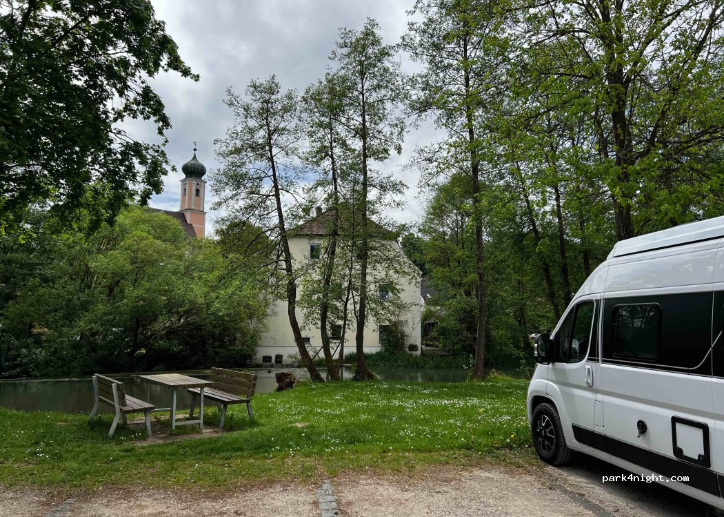 Wunderbarer Platz im Herzen des Ortes, trotzdem ruhig und idyllisch 5 km von der AB, perfekt zum Übernachten, zwei Picknickbänke. Saubere Toiletten Herzlichen Dank an die Gemeinde! PS, der Bäcker ums Eck verkauft leider abenteuerlich schlechte Ware, für sein Laugen Gebäck (in Bayern! ) müsste er eigentlich Berufsverbot bekommen.